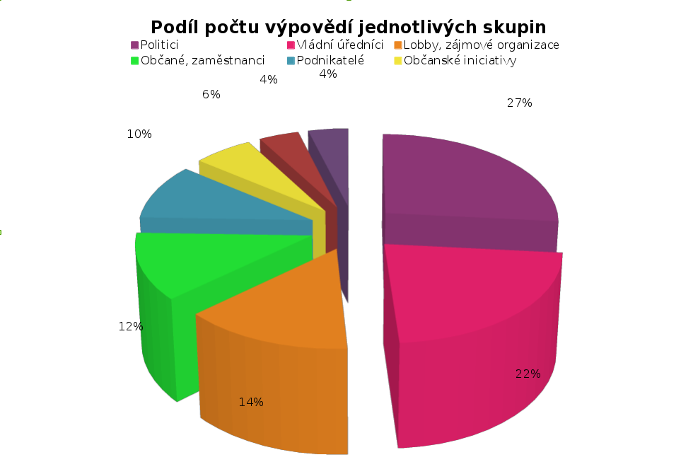 Pokud bychom sledovali pouze četnost externích výpovědí, zjistíme, že ve sledovaných Událostech takřka 2/3 z nich obstarali politici, státní úředníci a představitelé zájmových skupin. Pokud bychom navíc sledovali čas, věnovaný jednotlivým skupinám, bylo by to ještě daleko větší číslo. Do očí bijící je jednostrannost u některých příspěvků, kdy je dán prostor pouze jedné z kauzou dotčených stran, či kdy je prostor velmi asymetrický. Velkou část příspěvků pak rámují moderátoři ČT. Do očí bijící je nebývale velký prostor, který v Událostech dostali pánové Dienstbier, Zimola a Korbel. Jednotliví občané či občanské iniciativy dostali prostor k vyjádření v podstatě pouze k „nepolitickým” věcem.