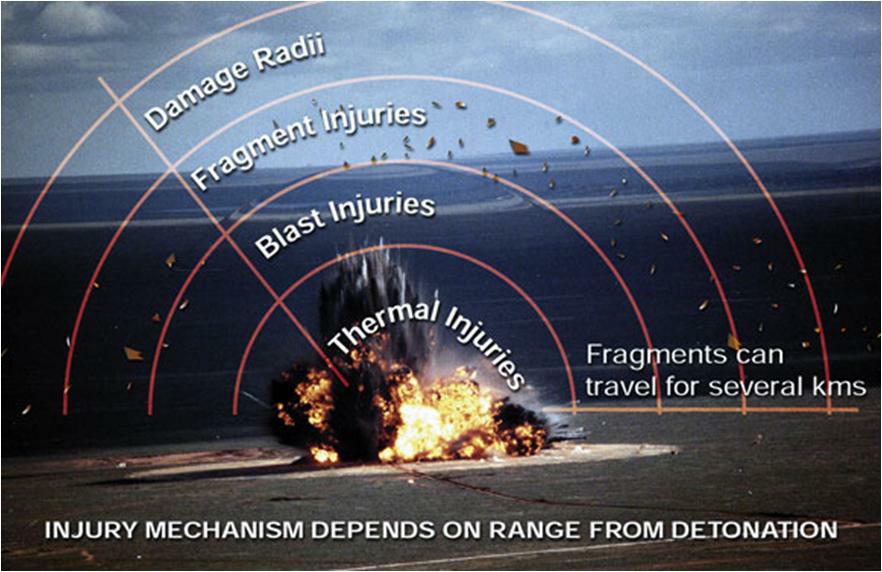 Z tohoto obrázku je již jasné, co se asi mohlo stát. Chemické zbraně měli povstalci uskladněné v kontejnerech nebo přímo v chemických granátech či raketách. Průbojné střelivo z tanků nebo raket vypálené syrskou armádou prorazilo betonový kryt. Tlaková a tepelná vlna přivedla k explozi uskladněné chemické zbraně, které zde měli povstalci připravené k útoku. Pokud byl sarin uskladněný v části obrázku nazvané "thermal injuries" či dokonce jen v další části tlakového působení, tak byly kontejnery rozmetány jen částečně destruktivním způsobem. A kontejnery s plynem mohly poškodit i šrapnely nebo fragmenty odpáleného betonu a zdiva, protože jejich rádius působení je mnohem větší.
