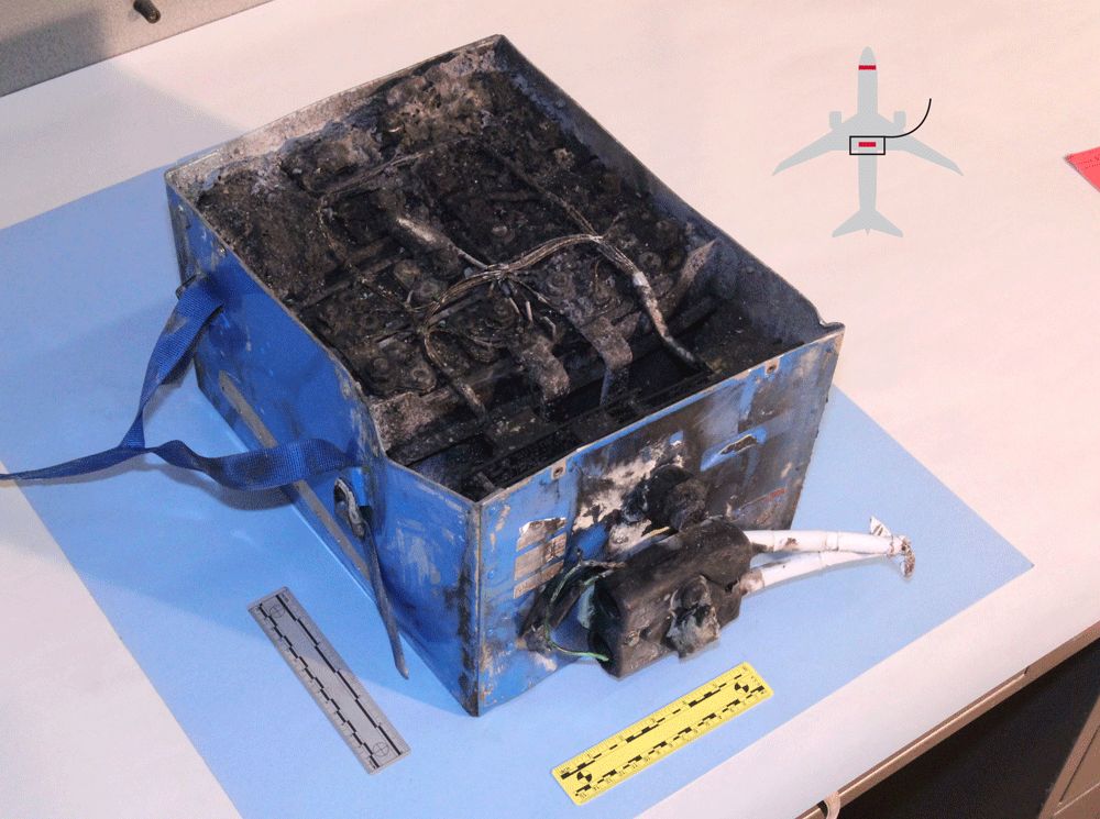 Vypálené baterie jsou sice oficiální důvod, proč FAA zastavila lety a začala vyšetřovat Boeing, ale nejsou jediný důvod. Baterie po zničení vypadala následovně.