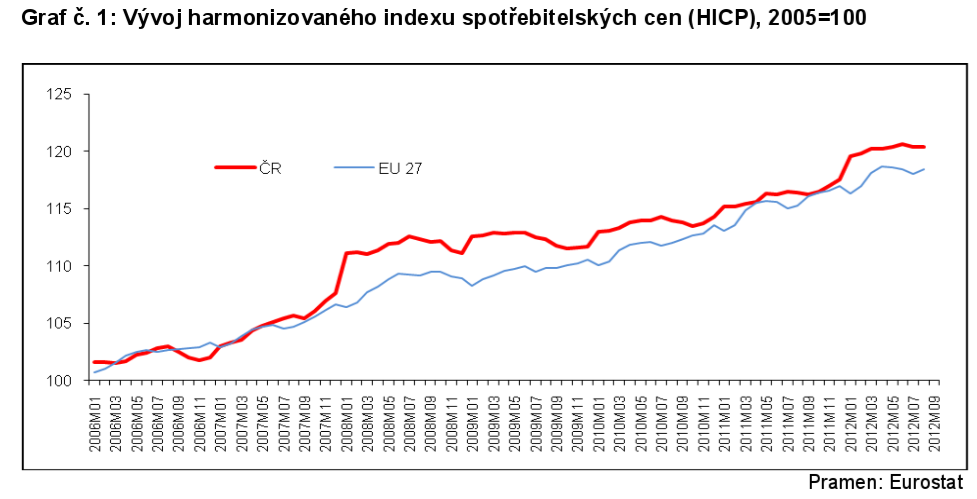 Za posledních sedm let stoupla cenová hladina pro spotřebitele v České republice mnohem více než v Evropské unii. Podle harmonizovaného indexu spotřebitelských (HICP), což je oficiální a srovnatelné měřítko vývoje cenových hladin, rostly ceny pro české spotřebitele oproti základně roku 2005 do července 2012 rychleji (+20,4 %) než je unijní průměrný růst (+18 %). Jinak řečeno: u nás není jen draho, ale je dokonce super draho. A kdo za to může?