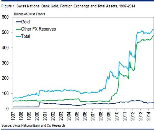 Švýcarská národní banka více jak tři roky intervenovala více než ostatní a oslabovala (podobně jako ČNB) svou měnu. Dnes se sice její guvernér vyjadřuje, že „není úkolem“ centrální banky podporovat exportéry, protože všichni hoteliéři a exportéři po neočekávané změně strategie zuří. Ale tehdy tak mohutně činil. Tak zvaní "ochránci švýcarského franku" bušili tak silně do kláves počítačů, že se jim podařilo nafouknout bilanci centrální banky nákupem eurových a dluhopisů různých zemí eurozóny a jiného šrotu na 85 % HDP země a trhnout tak rekord i proti americkému FEDu! Jeho bilanční suma odpovídá pouze 27 % HDP USA. Graf vývoje bankovní bilance ve Švýcarsku podle složek máte zde.