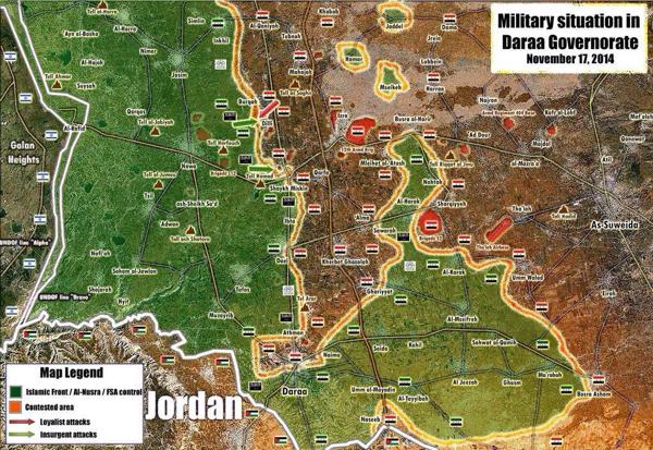 Klíčové je dobytí vrchů kolem oblasti Deir al-Adas, která kontroluje přístupové cesty ke Kunejtře v Golanech. Zde operuje nová teroristická parta nazvaná Al-Failaq al-Awal, kterou si pro vlastní účely složili pilný Izrael a Jordánsko, a to více méně z Al-Nusry. Jejich úkolem je chránit slavnou „buffer zone“, aby se SAA nedostala přímo ke Golanům. Aby to nevydalo, že Izrael podporuje teroristy přímo, znepokojení Drúzové, kteří mají přímé kontakty s těmito teroristy, se obrátili na Izrael s prosbou o tzv. „ochranu území“. Žijí celou dobu v okupovaném pásmu, Izrael jim poskytl ohromné výhody a prakticky si je zavázal jako vazaly. Nyní budou musel vzít rozum do hrsti. Jejich pozice mezi dvěma mlýnskými kameny a s teroristy na zahrádce není příliš záviděníhodná. Modré přilby již tuto oblast vyklidily, hlavně po posledním únosu vojáků OSN blahovolně sledovaném Izraelem za výkupné Al-Nusře.