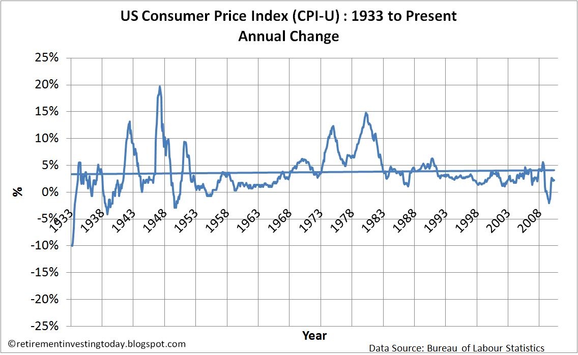 I dnes je cena surovin na nejnižší úrovni za 13 let. Pro USA to rozloženě vypadá takto, což je celkem malý růst cen surovin za 20 let.