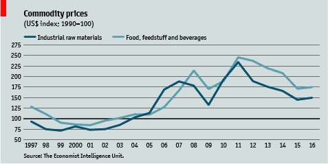 I dnes je cena surovin na nejnižší úrovni za 13 let. Pro USA to rozloženě vypadá takto, což je celkem malý růst cen surovin za 20 let.