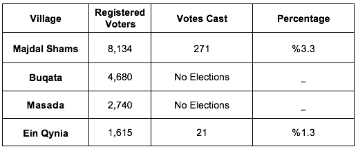 Pro neznalé uvádím, že státní vlajky jsou syrské, tedy Asadovy Sýrie. Takže je třeba přestat měřit dvojím metrem a po záboru Krymu je třeba mluvit o záboru Golan. Připomeňme, že po ruské okupaci Krymu hlasovalo více než 96% zúčastněných voličů při volební účasti 83% pro připojení k Rusku v referendu roku 2014. Volby vypsané Izraelem pro místní okupované samosprávy máte nahoře. O autonomii Golan se žádné referendum nevypisovalo, a nikdy vypisovat nebude.Tam rozhodne válka, jako vždy.