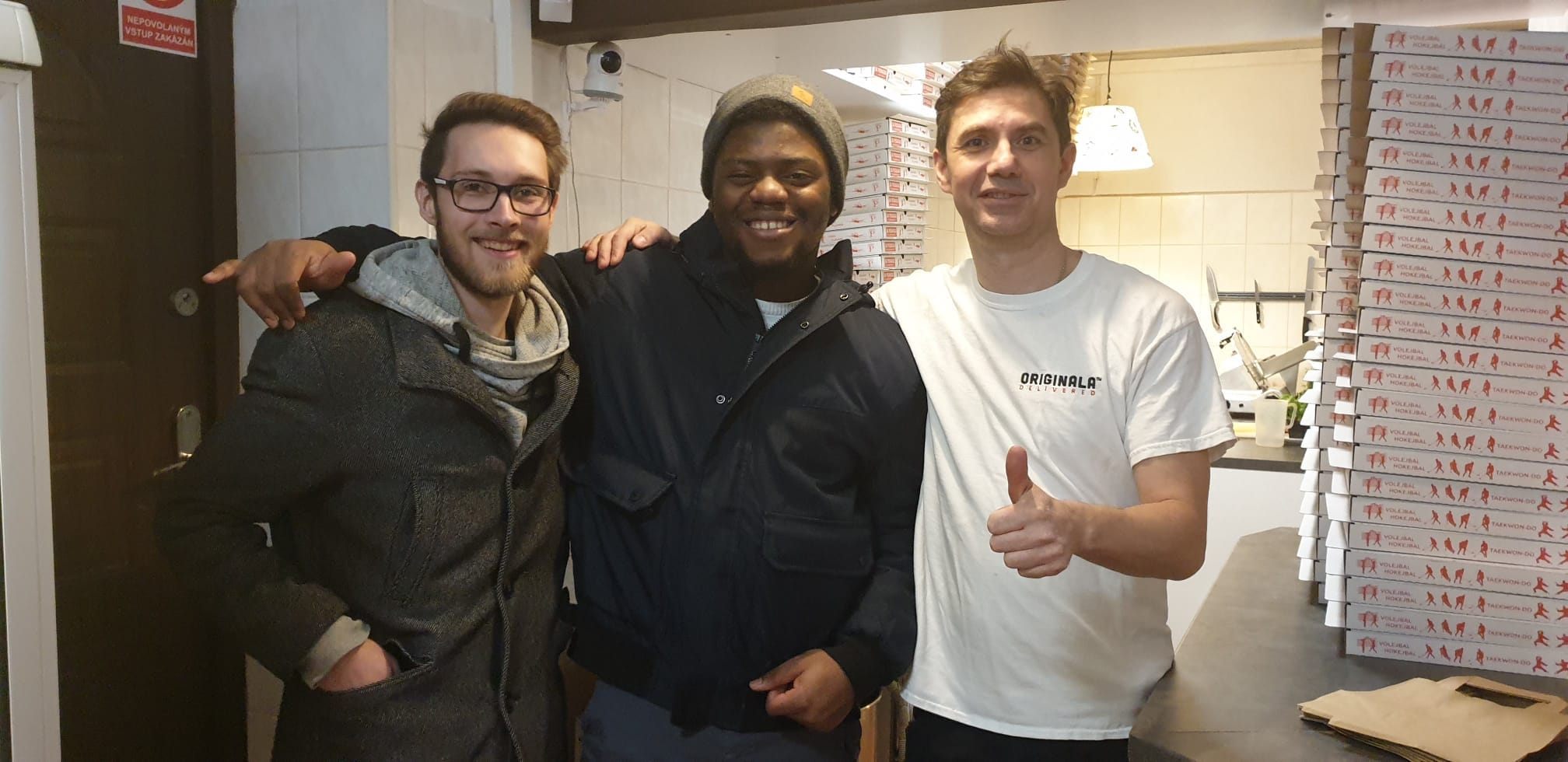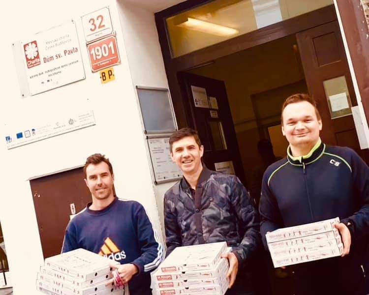 Pizzu jsme také na vánoce udělali bezdomovcům v azyláku. Tihle na fotce jsou zaměstnanci, kteří se o ně starají. Sám jsem byl na ulici, vím, jak je dobré dostat nějaký dárek.