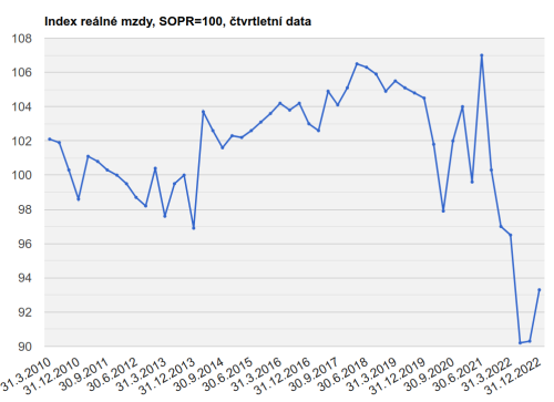 A podívejte se, co udělala s reálnou mzdou rozjetá inflace od roku 2022. Na rozdíl od válčícího Putina ji česká (zatím jen do války bubnující) pětikolka nehodlá nijak kompenzovat.