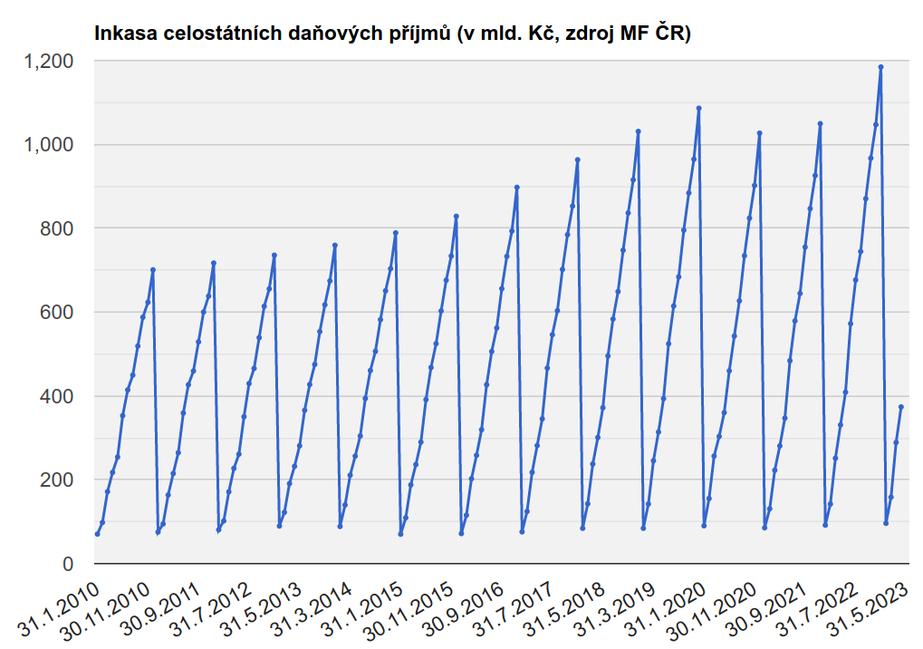 Podívejte se na politickou kleptokracii Řecka pod exekučním vedením bankovní Trojky a na dnešní Ukrajinu, pod vedením NATO. Viz hesla "Ukrajina" "bankovní Trojka" a "Řecko" ve vyhledávání článků. Článek Řecko předává suverenitu státu mezinárodním bankéřům jsme psali už v roce 2013. Teď nás čeká stejný scénář, tak se na něj podívejme. Otázka dluhů je jednoduchá jak facka. Můžete se zadlužit jen do výše reálných příjmů, pak o všechno přijdete. A ty příjmy musí být reálné, a ne vylhaný rozpočet pětikolky, který hezky kritizovala Babišova exministryně financí, Alena Schillerová (ZDE). Takže Stanjura lže a jistěže nekrade, já tomu chlapci zcela věřím. Lžeme a krademe, což je dobrý základ pro fantastické dluhové hospodářství, kterým přijdeme o suverenitu státu. O tu digitální a informační suverenitu jsme již díky pitomosti současných poslanců již přišli. Viz článek Jak shnít zaživa aneb V jaké zemi žijeme (3. díl). Je to na dobré řecké cestě, podívejte se ten článek a pochopíte proč. A nyní k tomu dluhu, začněme daňovými příjmy státu v desetiletém porovnání: