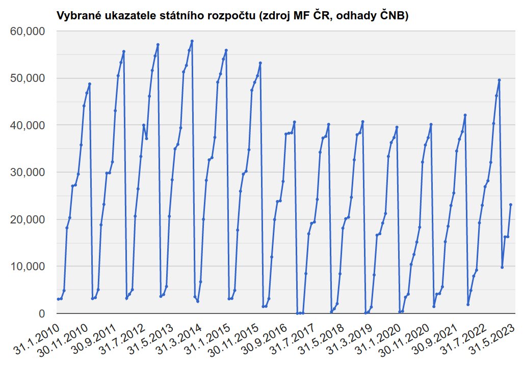 Jak jednoduché, milý Watsone. Cimrman to věštil přímo z trouby a podle Hegela zcela správně, protože vlastnictví je právní pojem garantovaný státem a jeho lidem. A nyní se podívejme na obsluhu státního dluhu. Řekněme jednoduše, že obsluha státního dluhu se stabilně pohybovala na úrovni 3 % výdajů ze státního rozpočtu. Tady je ARAD ČNB za posledních 10 let, položka UK 28, tj. "Běžné výdaje - státní dluh".