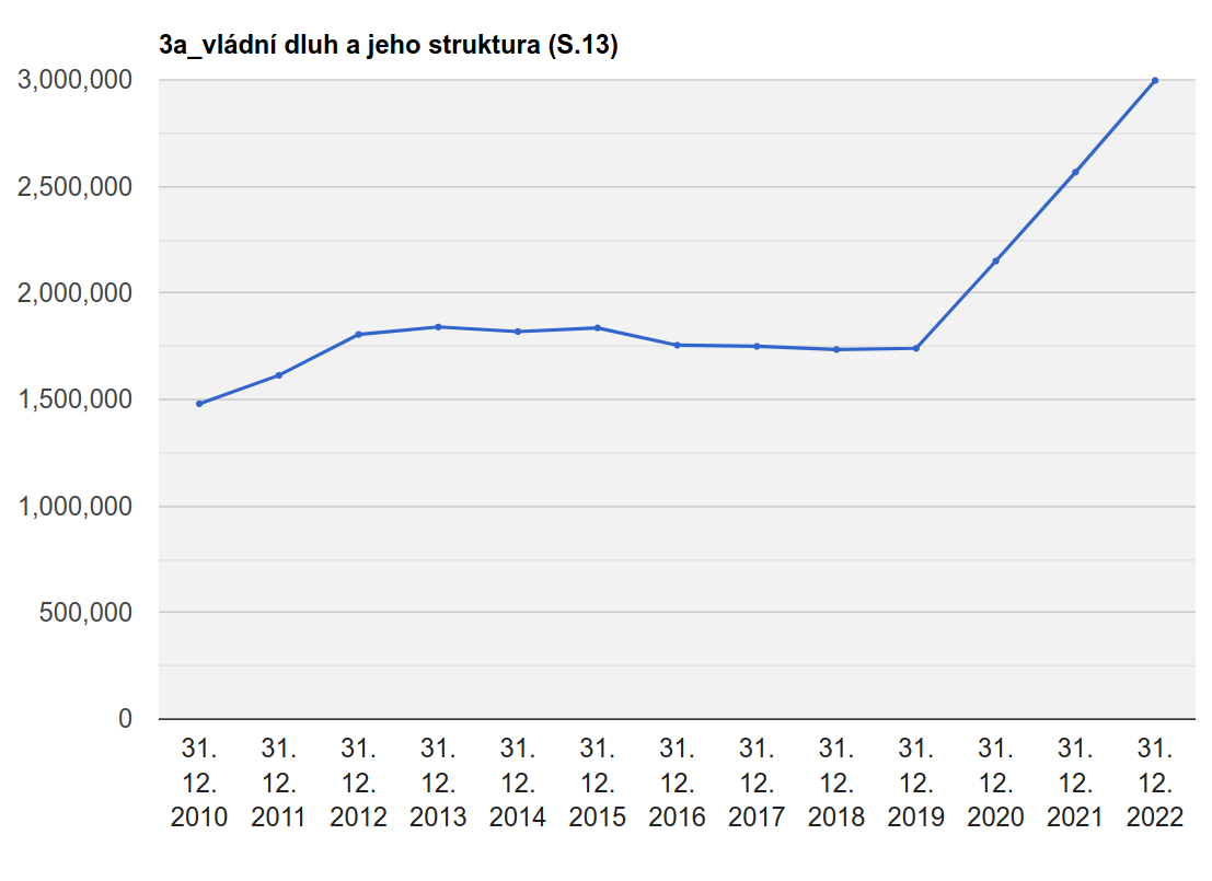 Pětikolka zadlužuje ČR od konce roku nejrychlejším tempem z celé EU. Máme prakticky nejvyšší inflaci z celé EU, díky Fialově moudré profesorské politice, která se podřídila zájmů zahraničních akcionářů a velmocí. Přitom zničila energetickou politiku platnou i posledních 30 kradoucích let. Máme zničené reálné mzdy a příští rok pětikolka okrade chudé lidi úplně napřímo. Předtím se kradlo ze státního, ale to už skončilo. Není kde brát, modří soudruzi. Výše dluhu prakticky odpovídá nárůstu zadlužení vlád z let 1993 až 2002. Fialova vláda se jen v roce 2022 reálně zadlužila jako všechny modré straky dohromady (obě vlády Klause, Tošovského, Zemana a částečně i Špidlova vláda). A teď je jasné, že ČNB by měla zvednout úrokovou sazbu o inflaci. To neudělala a drží to někde na šesti procentech, takže okrádá střadatele a tím dodává další tlak na inflaci a chudnutí obecného lidu. Ale ten masochisticky volí pravici, takže je to v pořádku. A pravice lidové sebepoškozovače po zásluze trestá, což je také v pořádku. Podle neoliberálně vyloženého Marxe se sociopati všech zemí mají spojit, a dělají to. Předtím měl Babiš dluhopisy maximálně na 1-2 %. Ale pozor, Schillerová to vydávala s protiinflační doložkou, což tehdy bylo rozumné, ale dnes nikoliv. Tady je emisní řada státních dluhopisů od roku 2019.