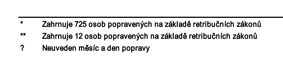 Do tohoto výčtu nejsou samozřejmě zařazeny stovky tisíc obětí německé okupace občanů Protektorátu Čechy a Morava ani obětí ukrajinské SS Galizia, oddílů OUN Stepana Bandery či dalších útvarů obnovujících německý pořádek na území Slovenského štátu v souvislosti s činností nacistů a potlačením Slovenského národního povstání. Relativně vysoký počet popravených za prezidentování E. Beneše je dán retribučními dekrety namířenými proti zrádcům a kolaborantům s německými fašisty. Právní čistotu podle dnešních měřítek v nich nehledejme. Jednak byli obžalovaní souzení podle paragrafů se zpětnou platností a jednak jim byla odepřena možnost odvolání.
