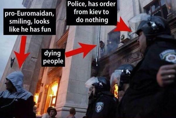 Masakry a nedejbože zapletení Jaceňukovy junty z Kyjeva do organizace vražd a pogromů? Něvazmožno. Jsou to bijci za demokracii a EU přes MMF jim právě půjčuje 17 miliard dolarů, aby měli na zdražený ruský plyn, který předtím rozkradli.