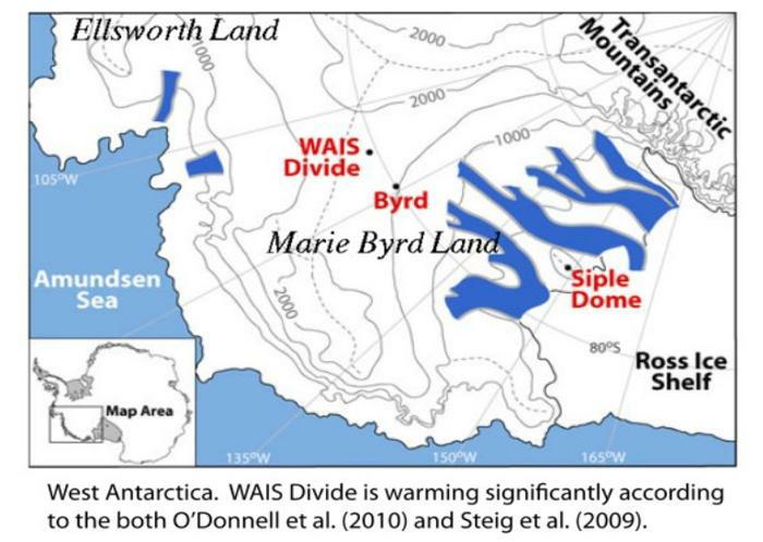 Poslední měření, která byla zveřejněna v časopise Geoscience (23.12.2012), ukazují dramatický nárůst teplot v západní Antarktidě blízko Byrdovy stanice. Vzrůst teplot v období let 1958-2010 byl 2,4 s odchylkou ±1,2 °C. Zvláště vysoké teploty byly naměřeny právě v době letních měsíců (prosinec-leden), kdy dochází k největšímu tání. Výsledky dvojnásobně převyšují předpovědi modelů globálního oteplování.