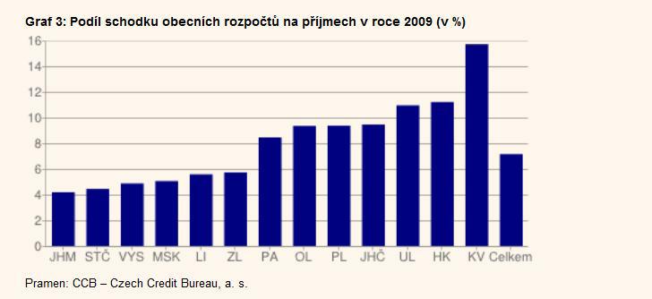 Nejvyšší schodek rozpočtu (měřeno jeho podílem na celkových příjmech) nalezneme u obcí Karlovarského kraje (144 %).