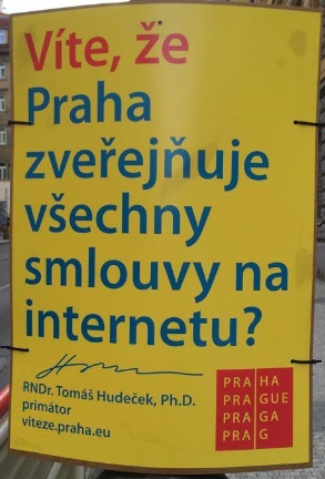 Proto lze jenom přivítat iniciativu komunikačního oddělení Magistrátu hl. m. Prahy. Její známá nezištnost a férovost umožní lídrovi jedné z kandidujících stran, shodou okolností TOP09 v čele s primátorem Tomášem Hudečkem, být již teď předskokany ostré kampaně. Prahu zaplavily oslavné plakáty na současné vedení Prahy. Podle sdělení Magistrátu se Pražané s touto „předkampaní“ budou setkávat až do září. Vynaložené finanční prostředky prý nepřesáhnou částku 350 tisíc Kč bez DPH. Rozměrově a finančně tedy nejde o Stalinův pomník na Letné, na který si zvykli starší Pražané, pouze o takový mediální před-pomník za post-demokratických časů.