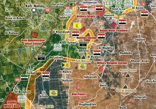 Postup na hlavní dálnici Aleppo-Homs (na mapě silnice M5) je pomalý, protože tam zuří největší boje. Pokud ISIL a další teroristé toto území ztratí, je s nimi konec. Přijdou o velkou část zásobování z Turecka, kam přestanou vyvážet kradenou ropu kolem Aleppa směrem na rafinerie u Bosporu. Viz mapu ruského generálního štábu. Zbytek ropy kradené Islámským státem jde přes území kontrolovaná Kurdy.
