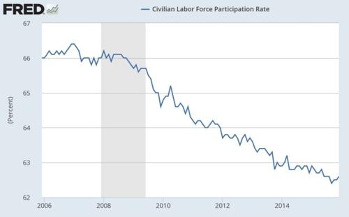 Tabulka ukazuje podíl práceschopného obyvatelstva v USA. I kdyby v zemi byla slušná práce, je zde stále méně domácích lidí, kteří by ji mohli vykonávat. Podobně devastující je i další statistika.