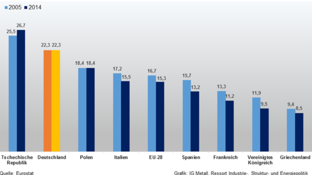 Výsledkem společné práce jsou směrnice průmyslové politiky a doporučení návrhů ve vztahu k Evropské unii, viz dokument Industrienation Deutschland. Proč to Německo dělá, to je zřejmé z následujícího grafu. Prosperita země a pracovní místa jsou z velké míry závislá na průmyslu. Podíl zpracovatelského průmyslu na HDP ze všech hospodářských odvětvích v Německu se za posledních 20 let prakticky nezměnil. V roce 2014 se hodnota 22,3 % prakticky rovná hodnotě z roku 1994. Naproti tomu podíl průmyslu na HDP v úhrnu za celé EU v roce 2014 je pouze 15,3 %. V hlavních průmyslových zemích, jako je Francie či Velké Británii, byl dokonce podstatně nižší.