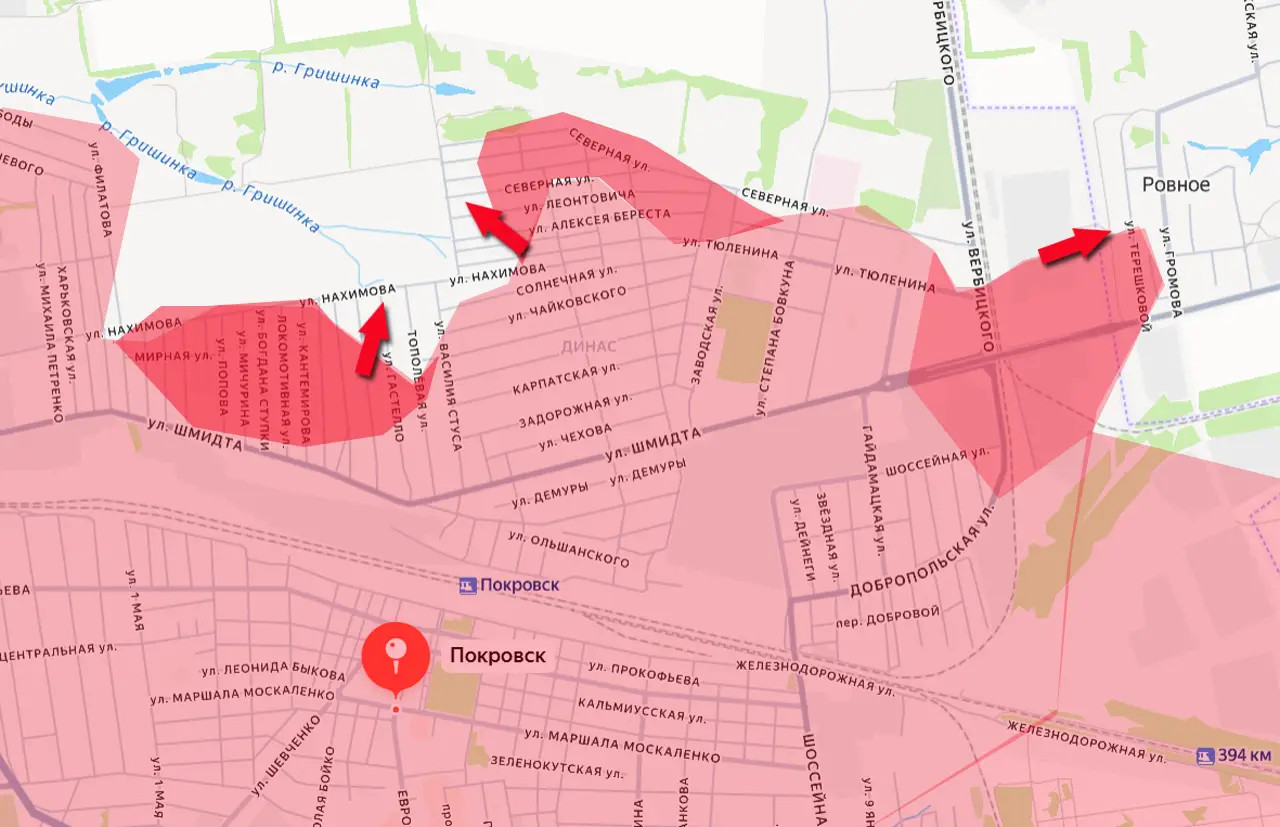 Večer 8. listopadu přišly zprávy, že ruská armáda dosáhla ulice Nachimov v městské zástavbě a současně vstoupila do vesnice Rivno. Tento postup znamená úplný kolaps zbývající obranné linie Ukrajinců na severu Pokrovska (Krasnoarmejska). Postup ruských ozbrojených sil jde na severovýchodní předměstí města až k železnici, která v podstatě vymezuje hranice města v této oblasti. Vzhledem k tomu, že nebyl zaznamenán žádný hromadný exodus ukrajinské posádky z Pokrovska, lze dospět k závěru, že většina ukrajinských ozbrojených sil ve městě byla zničena. Někteří z nich se přesunuli po jediné možné, ale zcela beznadějné trase do západní části Myrnohradu. Tam je čeká druhý kotel, který je už uzavřen a bude vyčištěn příští týden. Odhady o obklíčených Ukrajincích a žoldnéřích v obou kotlech se velmi liší, od 6 do 10 tisíc vojáků.