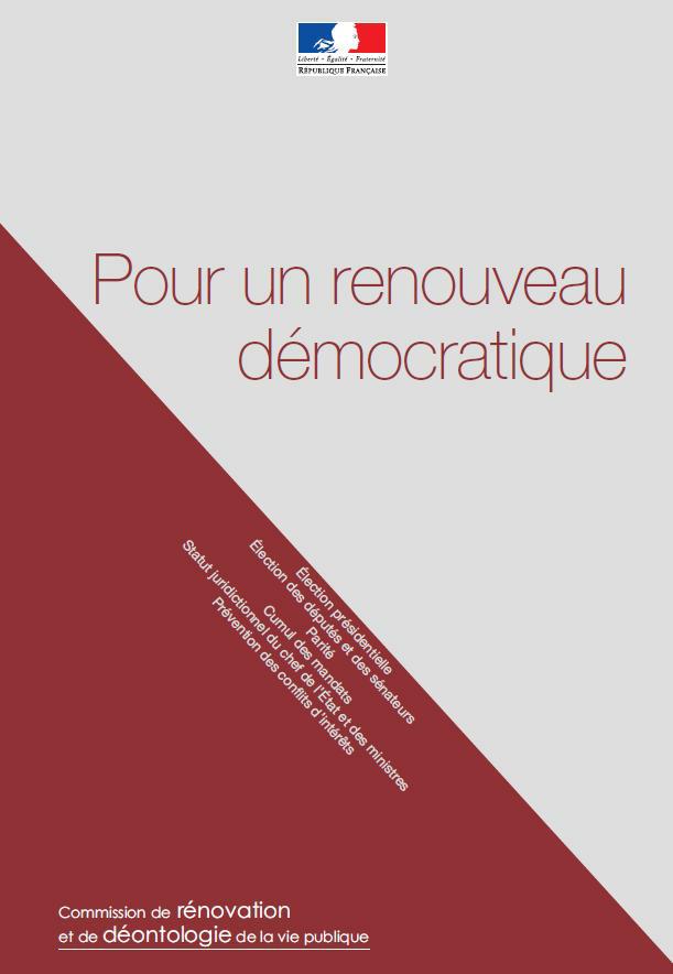 Dne 9. 11. odevzdala tzv. Jospinova komise složená ze 13 významných osobností prezidentovi republiky zprávu nazvanou "O demokratické obnově" (Pour un renouveau démocratique). Kompletní znění si můžete stáhnout zde. Dokument o 130 stranách obsahuje 35 doporučení, která mají zásadní charakter. Pokud by byla doporučení aplikována, pozitivně změní demokratické procesy ve Francii. Shrňme stručně základní body zprávy: