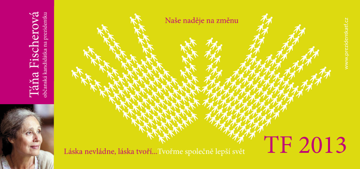 A tak se dostáváme k současnosti, kdy zatímco ve světě jsou pod záminkou terorismu a kriminality přijímány stále represivnější zákony, v českém parlamentu je schválen vysoce demokratický a pokrokový zákon: přímá volba prezidenta republiky. Tisíce lidí by si přály kandidáta vně zavedených struktur, a tak žádají o kandidaturu Táňu Fischerovou, která přijímá. Rodí se občanské hnutí, které mimo mocenské struktury, bez finančních prostředků, bez reklamních agentur a bez podpory médií nashromáždí 80 000 podpisů na podporu své kandidátky. Výjimečný fenomén, který ukazuje, že zde neexistuje pouze manipulace informací a moc peněz, ale že lidé mohou uniknout kruté logice čísel a statistik. Toto občanské hnutí má zvláštní náboj: naději na pozitivní změnu, vedenou lidskými hodnotami. Podpořit a volit Táňu Fischerovou znamená podpořit tuto naději, znamená to věřit lidem, a ne těm mocným, znamená to věřit v sám sebe a ve společenství lidí, ne ve výjimečné „osobnosti” (byť třeba mají i modrou krev), které po předvolebních slibech rychle zradí důvěru těch, kteří je volili.