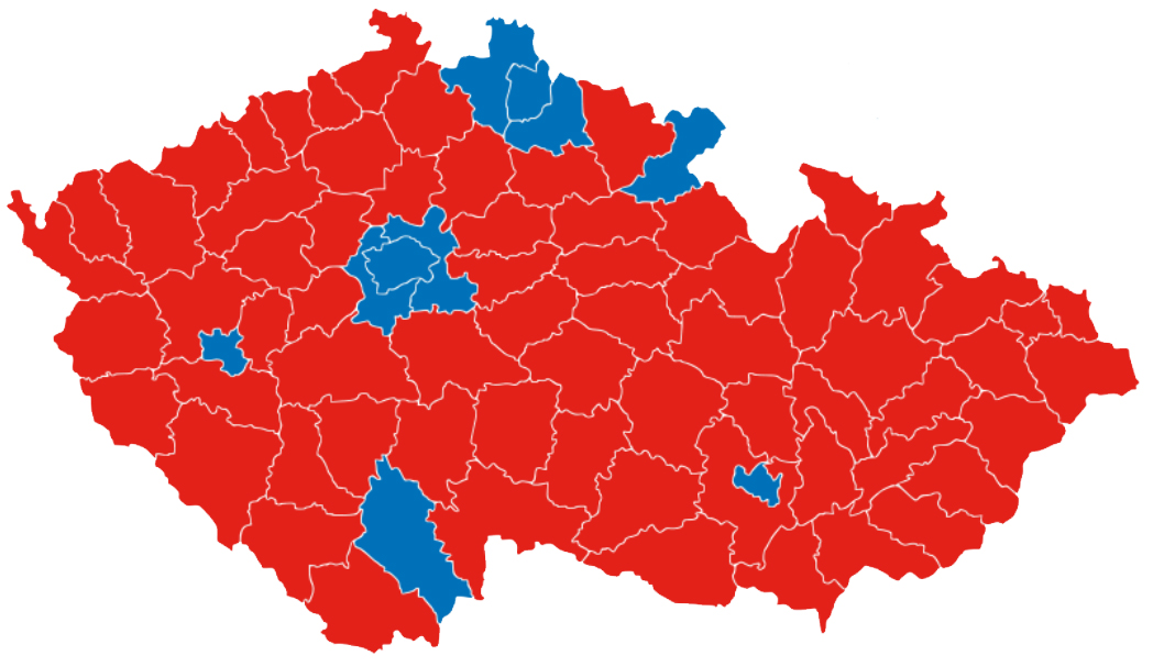 Z mapy druhého kola je jasné, že knížete Schwarzenberga volila jen velká města: Praha plus Středočeský kraj, Plzeň, jeho nikoliv drobné knížectví, politicky zapálení středostavovští Pražáci lyžující o volebním víkendu v Krkonoších, kousek feudálně naladěných východních Čech a moravské Brno nesnášející arogantní socany na zdejší radnici. Zdejší sociální demokraté šli v prvním kole volit Dienstbiera a pak buď spáchali sebevraždu nebo šli bojovat za českého knížete k letohrádku Hvězda na Bílé Hoře. Podávejme se na výslednou mapu voleb druhého kola (zdroj Wikipedie).