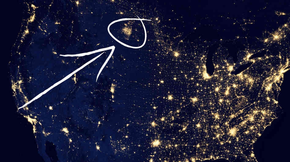 Ohromná světelnost je v severní Dakotě na místě, kde neexistují žádná velká města nebo osídlení. Ve skutečnosti jde o stovky frakovacích vrtů, z nichž z bezpečnostních důvodů uniká zemní plyn a je spalovaný ve věži. Nikdo nebyl schopný odpovědět na jednoduchou otázku: Kolik emisí vysílají tyto vrty do atmosféry? Běžný pohled na noční Ameriku ukazuje, že jde o rozsáhlé oblasti.