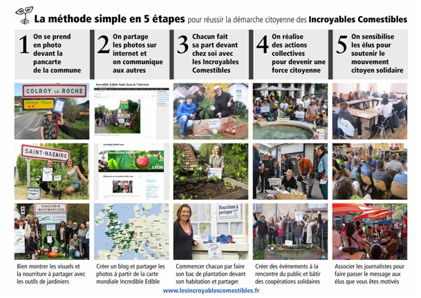 Celá inicitiva se jmenuje Neuvěřitelné věci k jídlu (Incredible Edible, Incroyables Comestibles) a nyní se rychlým tempem šíří z Velké Británie a Francie do světa. Aktivistická metoda je úplně jednoduchá.