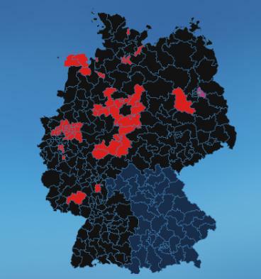 Mapa obou modrých barev jasně ukazuje, že šlo o plebiscit popularity kancléřky Merkelové.