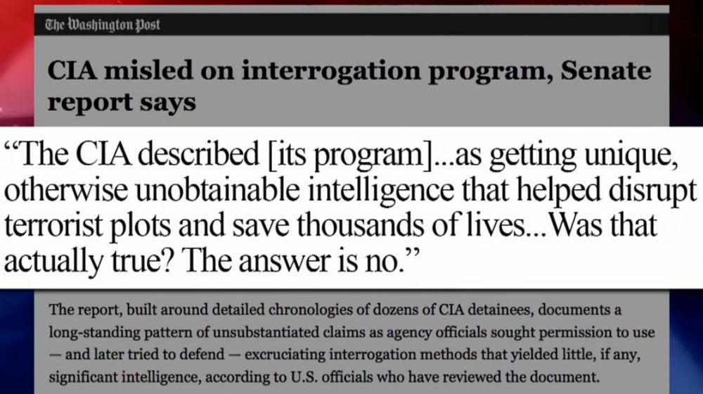 Klíčový je ovšem závěr, k němuž komise dospěla. Tzv. "rozšířené metody výslechu" (enhanced interrogation techniques) nevedly k žádným pozitivním výsledkům z oblasti zpravodajství. Rozšířený mýtus o tom, že mučením Američané vyrazili z vězňů přiznání o pobytu Bin Ládina, je podle komise nepravdivé. Hlavní důkaz přišel zabavením kurýrní pošty teroristů a následné mučení vězňů bylo zbytečné. Závěr zprávy jsme dali graficky.