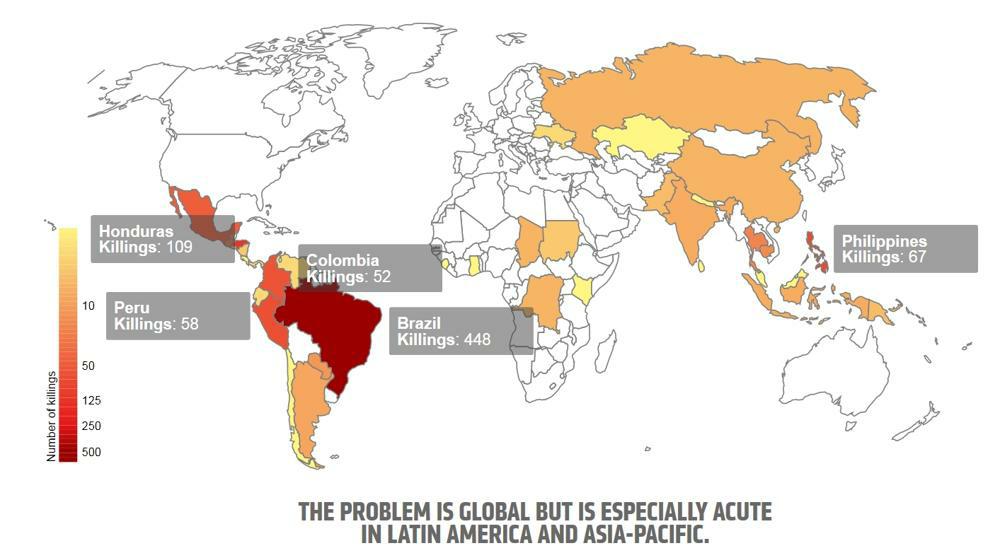 Celou publikaci si můžete stáhnout zde v PDF. Klíčová tabulka s počty zabitých environmentálních aktivistů v jednotlivých zemích světa od roku 2002-2013 je na straně 10.