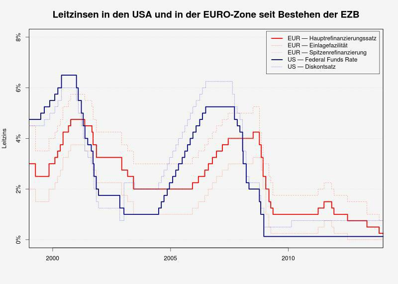 Stoprocentně jisté je, že monetární politika Federálních rezerv, ECB a ostatních centrálních bank, které měly dle mainstreamových médií „přispívat k finanční stabilitě“ byla využita ke zcela opačným cílům. V součinnosti se zkorumpovanými politiky, kteří zradili zájmy lidu svých zemí, se podařilo vyvolat krizi, která nemá historické obdoby. K proradnosti politiků se podívejte na vědeckou studii Výzkum potvrdil, že vlády států slouží zbohatlíkům a korporacím. V čem je jejich zrada? Nechali akcelerovat bublinu státního zadlužení a ve spolupráci s bankéři nafoukli v krátké době do neskutečné výše královnu všech bublin: trh státních dluhopisů, akciový trh a opětovně i trh nemovitostní. Tisk peněz z rotaček již pád nezastaví. Úrokové sazby jsou na dně a to znamená, že už není kam jít. Jsme na konci jednoho cyklu. Graf vývoje základní úrokové sazby u dolaru a eura vypovídá vše. Na grafu vidíte, jak kvantitativní uvolňování (quantitative easing, QE) levných peněz za téměř nulové úroky (červená křivka) hnaly do výše akciovou bublinu v USA.