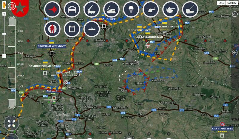 Taktika povstalců připomínala Velkou vlasteneckou válku, což ostatně pro opolčence i byla. Bojovali za své rodiny a za svou rodnou zem. Za cenu obětí a nesmírného úsilí zastavili armádní a žoldnéřskou ofenzívu pučistů z Kyjeva. Podívejte se na jejich situaci v tehdy obklíčené Gorlovce. A druhý krok této vpravdě "ruské" války je logický. Okamžitě rozvinout vlastní vojska a nastoupit do ofenzívy, nedat fašistickému protivníkovi vydechnout a konzolidovat jeho rozvrácené a demoralizované svazy. Protože nežijeme za časů Druhé války, pohyby na frontě byly ohromně rychlé. To ukazuje první obrázek obklíčení Debalceva ze 17. 9., kdy se začaly nůžky uzavírat.