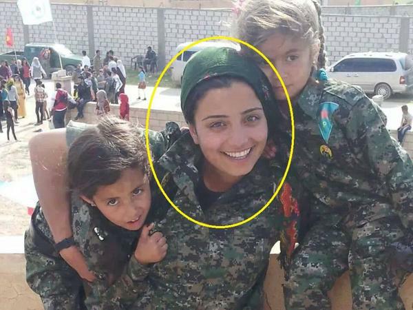 Na obrázku vidíte četařku Arin Mirkanovou z marxistické větve jednotek YPG s jejími dvěma dětmi. Bojovala v jedné z početných ženských jednotek u Pešmergů, viz toto video její jednotky při denním nástupu. Záběr na tuto hrdinku najdete na konci videa.