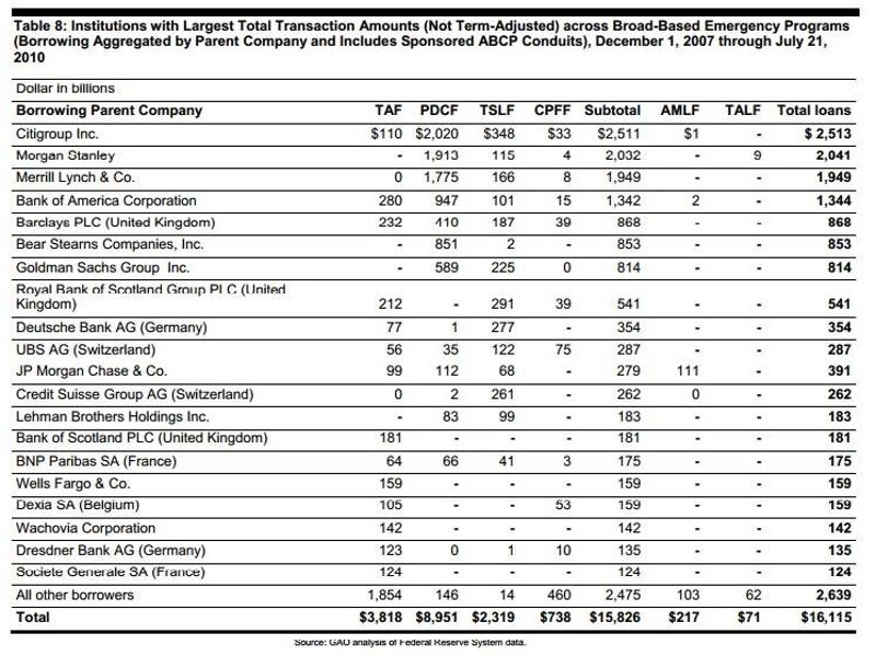 - Citi Group - dluh u Fedu 2 513 milliard dolarů;