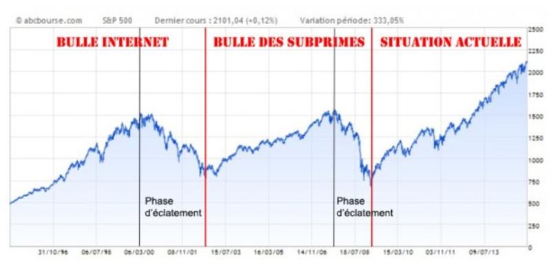 Podle let jsou zde zachyceny všechny tři hlavní krize posledních let. Internetová bublina, hypotéční bublina, i ta největší, tj. derivátová a finanční bublina, která ještě nepraskla. Jistěže za to může Putin, proto je třeba válku s Ruskem přeměnit ze studené na horkou. Zloděj musí nějakého obětního beránka najít, protože ta poslední bublina bude fakt globální nadělení.