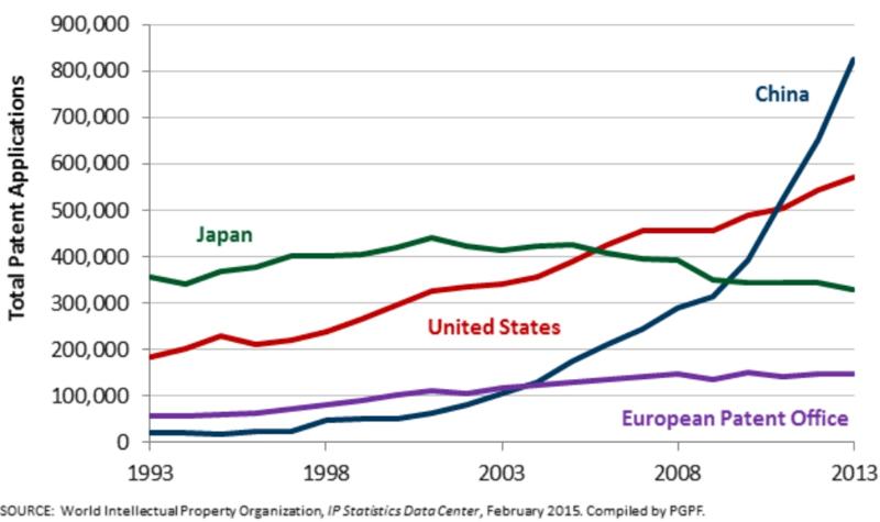 Podle World Intellectual Property Organization (WIPO) stoupl počet patentů Číny o 35 % jen v letech 2010-2011. USA je dávno vzadu, stejně jako Česko.