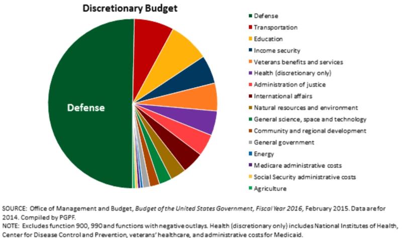 USA utrácí na zbraně víc, než 8 ostatních největších zemí světa dohromady. Čisté náklady na zbrojení pohlcují neuvěřitelných 20 % všech federálních výdajů. To je tolik jako všechny sociální výdaje, nebo spojené výdaje na sociální a nemocenské pojištění (Medicare a Medicaid).