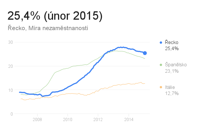Protože Řecko nemá bankovní likviditu, pak mu nikdo nechce dát ani běžný provozní úvěr. To znamená, že i úspěšní obchodníci musí všechno platit předem. To znamená další ránu řeckému průmyslu. Tento graf ukazuje, jak zničení ekonomiky produkuje nezaměstnanost.