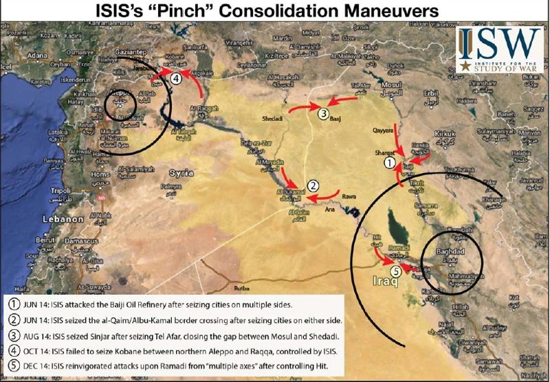 Prodlužováním války z území ovládaného ISILem utekly další 3 milióny uprchlíků a přidaly se k těm ostatním několika miliónům. A to už západní demokraty nezajímá, dokud nedošli minulý měsíc masově až do EU, přesněji řečeno, do její západní části. Asad musí pryč, cena je vedlejší. Mapa Pentagonem placené organizace ukazuje, jak šikovně Západ manévroval s teroristy, aby územně rozbil Sýrii na teritoria s příslušnými "war-lords" placenými Saúdy, Katarem a Tureckem. Kleště svírající ze dvou ohnisek centrální část Sýrie s ropnými poli jsou jasně zřetelné.