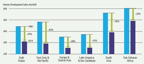 Ale pozor, příklady z neoliberální Chile a jinak nasměrovaného afrického Gabonu ukazují, že růst bohatství v zemi ve formě příjmu na obyvatele neznamená automaticky vyšší úroveň lidí. Obecně platí, že za poslední desetiletí se více zemí přesunulo z pásma naprosté chudoby do vyšších pater, což ovlivnilo celkový růst. Hodnocené indikátory proto vykazují přestup zemí na vyšší úroveň, a dokonce relativně stejnoměrný ve všech částech světa.