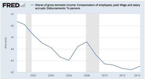 Podíl placených zaměstnanců na HDP trvale klesá, což ukazuje další graf. Jinak řečeno, v zemi ubývá možností pro klasické zaměstnání v průmyslu a ve službách, které ale normálně zaměstnávají drtivou většinu populace. Další graf se týká domácností.