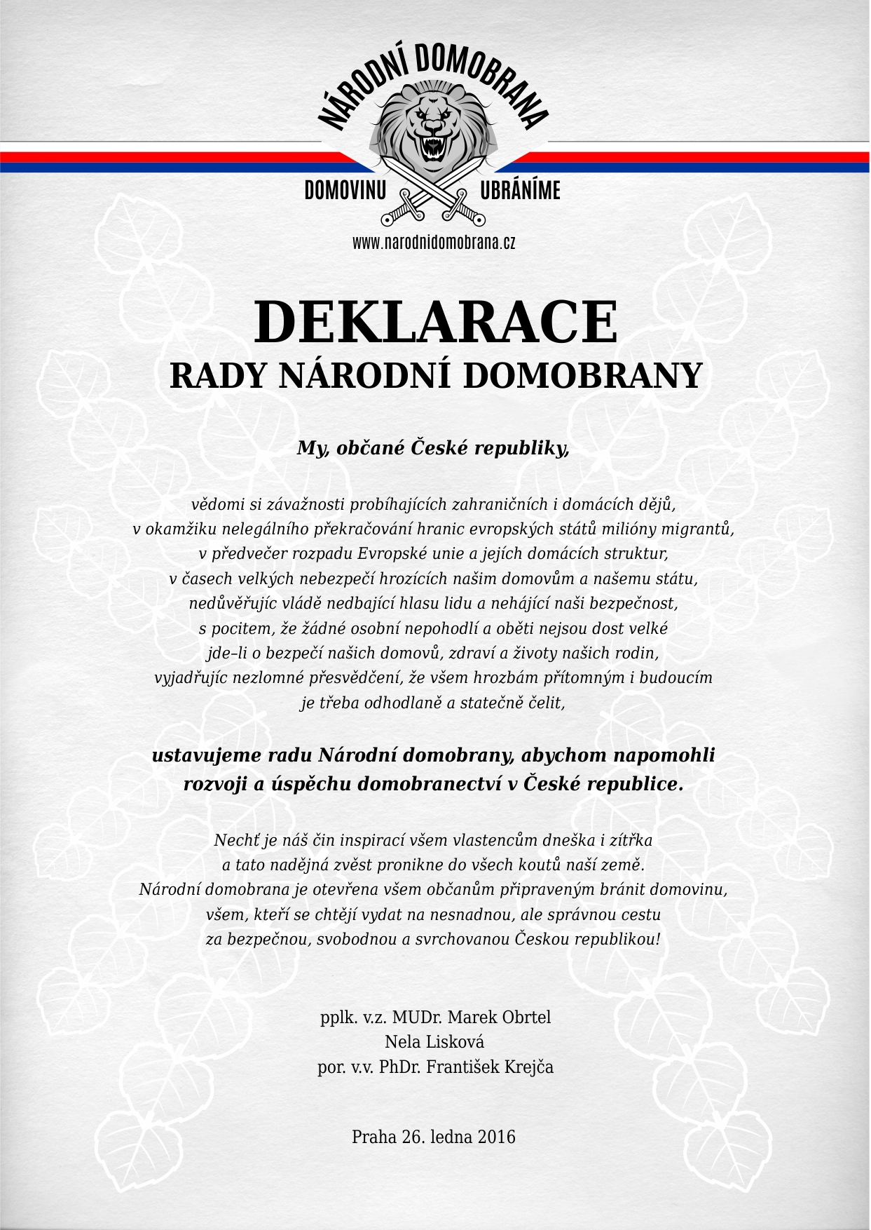 Naše redakce obdržela žádost o zveřejnění níže uvedených informací o založení Národní domobrany. Tyto materiály zatím publikujeme bez komentáře.