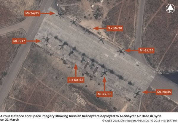 Na obrázku jasně vidíte zaparkované ruské vrtulníky, které zde i nyní pokračují v ofenzívě proti teroristům v Hámě a Palmýře. V Hámě šlo minulý měsíc do boje celkem 10 tis. uřezávačů hlav, jejich ofenzíva je zastavena a syrská armáda postupně dobývá klíčové vrcholy a území zpět. Tito teroristé okamžitě po americkém útoku na letiště spustili ofenzívu, což je známý scénář po US-bombardování (tzv. "omylem") klíčové strategické výšiny u letiště v Deir es-Zauru, kde Američané zabili asi 100 vojáků z města. Útok USA a teroristů byl ukázkou vzorové vojenské koordinace. Zde je teroristy obleženo už několik let cca 100 tis. lidí, které Rusové zásobují ze vzduchu.