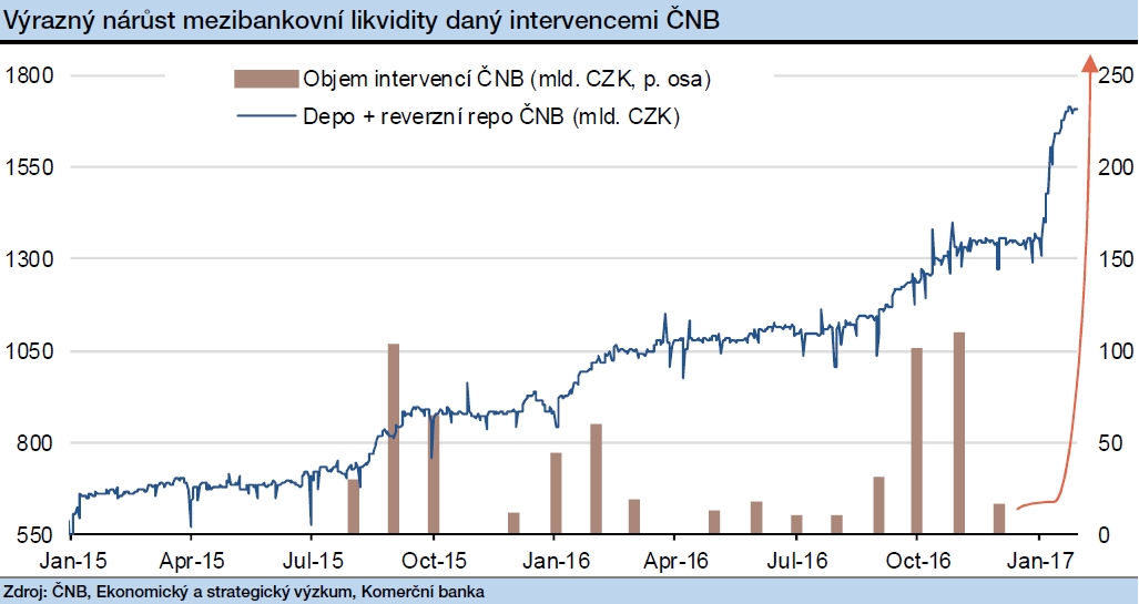 ČNB držela tzv. „kurzový závazek“, že bude uměle devalvovat naši měnu a profutrovala na této zajímavé bankovní operaci celkem 2,05 bilionu našich společných korun. Celkovou operaci ukazuje graf mezibankovní likvidity ČNB a vzrůst tzv. „depozit“, čili finančního šmejdu, který ČNB pořídila za naše koruny.