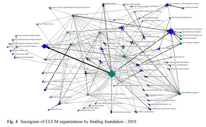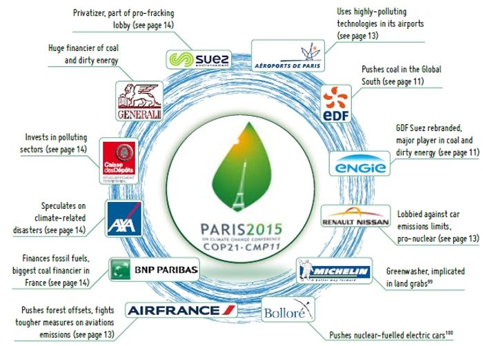 Následující analýza výsledků této konference přesně ukazuje divadlo, které hlavní znečišťovatelé provozují kolem tohoto tématu (Výsledky COP21: Mnoho povyku pro nic). V článcích je popsán mechanismus manipulace ohledně ekologie. Dále se podívejte na článek Analýza dárců a organizací popírajících globální oteplování. Tato temná síla peněz (dark money) korporátního bloku nazvaného The climate change counter-movement (CCCM) je skutečně impozantní. Je formovaná na způsob mediální show s hlavními hvězdami, režiséry, muži v pozadí a pochopitelné i skrytými organizacemi financujícími celou kampaň. Vědci znázornili základní investory v podobě tohoto pavouka.