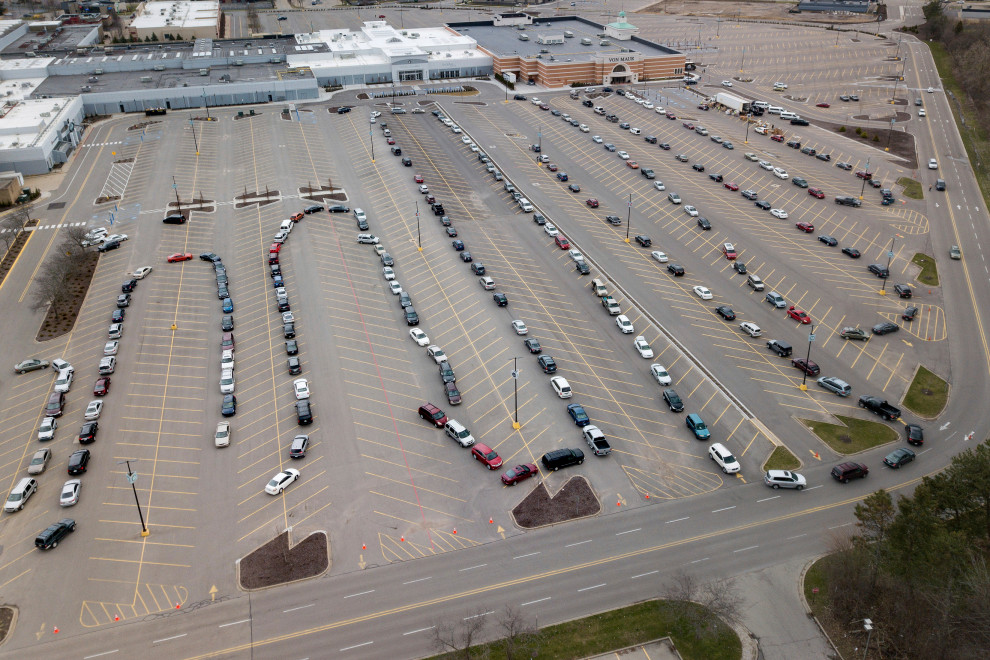 Manažer „San Antonio Food Bank“ Eric Cooper sleduje deset tisíc aut čekajících v místě distribuce potravin. Tato potravinová banka obvykle živí asi 60 tisíc lidí týdně - nyní je jich za stejné období asi 120 tisíc.