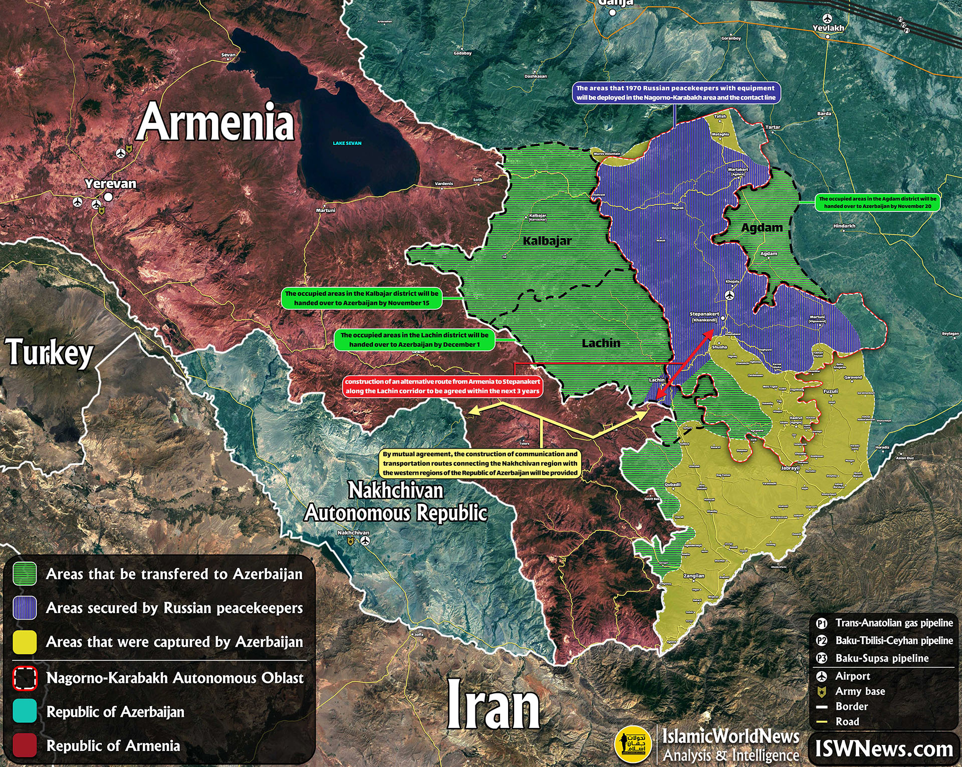 - připojení oblasti Agdam, Kalbajar a Lachin k Ázerbájdžánu;