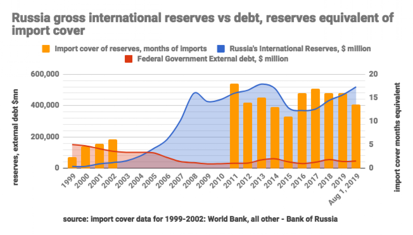 Odpověď je jednoduchá: Už ne. Klíčovým ukazatelem je zahraniční dluh a státní rezervy, které má RF hlavně ve zlatě.