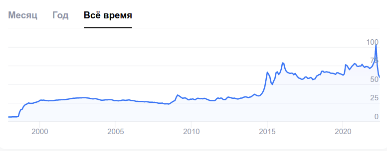 Takže křivka místo výstřelu strmě nahoru začala strmě klesat. Sorry jako, hoši z ECB, Fedu a Světové banky. Druhý graf ukazuje celkový vývoj kurzu rubl/dolar za dlouhé období, které je důležité okomentovat. Pád dolaru vůči rublu máte až na konci, kdy začala ostrá válka na Ukrajině.